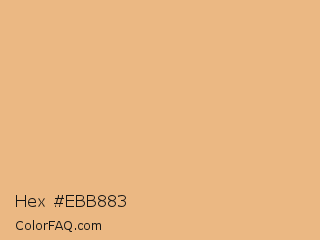 Hex #ebb883 Color is a light orange color and the nearest color is Tacao #edb381. Hex code #ebb883 and RGB value is rgb(235,184,131). In RGB color space, this color is composed of 92% red, 72% green, 51% blue, In CMYK color space, this color is composed of 0% cyan, 22% magenta, 44% yellow , 8% black , In HSL color space, this color has a hue angle of 31° , 72% saturation and 72% lightness.