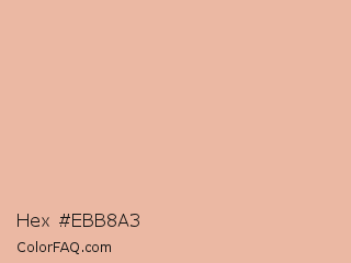 Hex #ebb8a3 Color is a light orange color and the nearest color is Cashmere #e6bea5. Hex code #ebb8a3 and RGB value is rgb(235,184,163). In RGB color space, this color is composed of 92% red, 72% green, 64% blue, In CMYK color space, this color is composed of 0% cyan, 22% magenta, 31% yellow , 8% black , In HSL color space, this color has a hue angle of 18° , 64% saturation and 78% lightness.