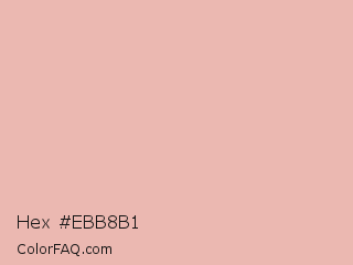 Hex #ebb8b1 Color is a very light red color and the nearest color is Shilo #e8b9b3. Hex code #ebb8b1 and RGB value is rgb(235,184,177). In RGB color space, this color is composed of 92% red, 72% green, 69% blue, In CMYK color space, this color is composed of 0% cyan, 22% magenta, 25% yellow , 8% black , In HSL color space, this color has a hue angle of 7° , 59% saturation and 81% lightness.