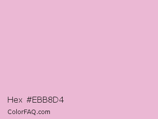 Hex #ebb8d4 Color is a very light magenta color and the nearest color is Cameo Pink #efbbcc. Hex code #ebb8d4 and RGB value is rgb(235,184,212). In RGB color space, this color is composed of 92% red, 72% green, 83% blue, In CMYK color space, this color is composed of 0% cyan, 22% magenta, 10% yellow , 8% black , In HSL color space, this color has a hue angle of 327° , 56% saturation and 82% lightness.
