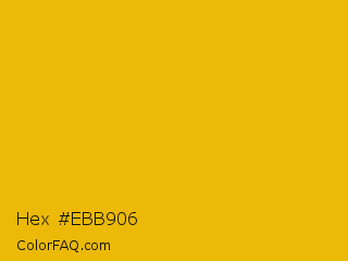 Hex #ebb906 Color is a normal yellow color and the nearest color is Corn #e7bf05. Hex code #ebb906 and RGB value is rgb(235,185,6). In RGB color space, this color is composed of 92% red, 73% green, 2% blue, In CMYK color space, this color is composed of 0% cyan, 21% magenta, 97% yellow , 8% black , In HSL color space, this color has a hue angle of 47° , 95% saturation and 47% lightness.