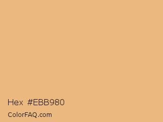 Hex #ebb980 Color is a light orange color and the nearest color is Tacao #edb381. Hex code #ebb980 and RGB value is rgb(235,185,128). In RGB color space, this color is composed of 92% red, 73% green, 50% blue, In CMYK color space, this color is composed of 0% cyan, 21% magenta, 46% yellow , 8% black , In HSL color space, this color has a hue angle of 32° , 73% saturation and 71% lightness.