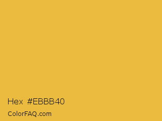 Hex #ebbb40 Color is a normal orange color and the nearest color is Meat Brown #e5b73b. Hex code #ebbb40 and RGB value is rgb(235,187,64). In RGB color space, this color is composed of 92% red, 73% green, 25% blue, In CMYK color space, this color is composed of 0% cyan, 20% magenta, 73% yellow , 8% black , In HSL color space, this color has a hue angle of 43° , 81% saturation and 59% lightness.