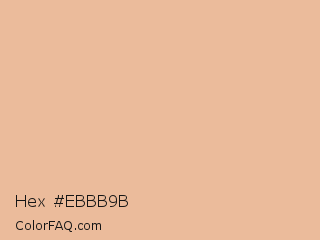 Hex #ebbb9b Color is a light orange color and the nearest color is Cashmere #e6bea5. Hex code #ebbb9b and RGB value is rgb(235,187,155). In RGB color space, this color is composed of 92% red, 73% green, 61% blue, In CMYK color space, this color is composed of 0% cyan, 20% magenta, 34% yellow , 8% black , In HSL color space, this color has a hue angle of 24° , 67% saturation and 76% lightness.