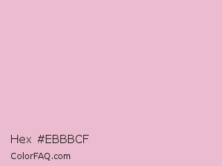 Hex #ebbbcf Color is a very light rose color and the nearest color is Cameo Pink #efbbcc. Hex code #ebbbcf and RGB value is rgb(235,187,207). In RGB color space, this color is composed of 92% red, 73% green, 81% blue, In CMYK color space, this color is composed of 0% cyan, 20% magenta, 12% yellow , 8% black , In HSL color space, this color has a hue angle of 335° , 55% saturation and 83% lightness.