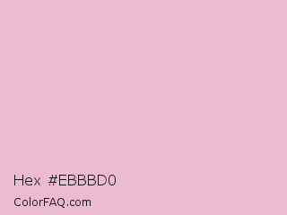 Hex #ebbbd0 Color is a very light rose color and the nearest color is Cameo Pink #efbbcc. Hex code #ebbbd0 and RGB value is rgb(235,187,208). In RGB color space, this color is composed of 92% red, 73% green, 82% blue, In CMYK color space, this color is composed of 0% cyan, 20% magenta, 11% yellow , 8% black , In HSL color space, this color has a hue angle of 334° , 55% saturation and 83% lightness.