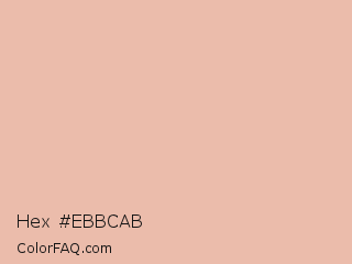 Hex #ebbcab Color is a light orange color and the nearest color is Zinnwaldite #ebc2af. Hex code #ebbcab and RGB value is rgb(235,188,171). In RGB color space, this color is composed of 92% red, 74% green, 67% blue, In CMYK color space, this color is composed of 0% cyan, 20% magenta, 27% yellow , 8% black , In HSL color space, this color has a hue angle of 16° , 62% saturation and 80% lightness.