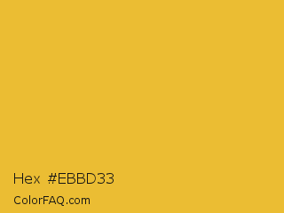 Hex #ebbd33 Color is a normal orange color and the nearest color is Meat Brown #e5b73b. Hex code #ebbd33 and RGB value is rgb(235,189,51). In RGB color space, this color is composed of 92% red, 74% green, 20% blue, In CMYK color space, this color is composed of 0% cyan, 20% magenta, 78% yellow , 8% black , In HSL color space, this color has a hue angle of 45° , 82% saturation and 56% lightness.