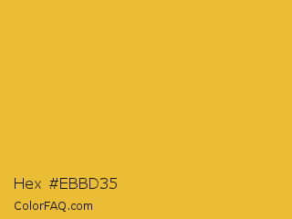 Hex #ebbd35 Color is a normal orange color and the nearest color is Meat Brown #e5b73b. Hex code #ebbd35 and RGB value is rgb(235,189,53). In RGB color space, this color is composed of 92% red, 74% green, 21% blue, In CMYK color space, this color is composed of 0% cyan, 20% magenta, 77% yellow , 8% black , In HSL color space, this color has a hue angle of 45° , 82% saturation and 56% lightness.