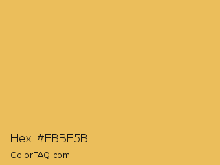 Hex #ebbe5b Color is a light orange color and the nearest color is Equator #e1bc64. Hex code #ebbe5b and RGB value is rgb(235,190,91). In RGB color space, this color is composed of 92% red, 75% green, 36% blue, In CMYK color space, this color is composed of 0% cyan, 19% magenta, 61% yellow , 8% black , In HSL color space, this color has a hue angle of 41° , 78% saturation and 64% lightness.