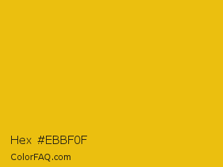 Hex #ebbf0f Color is a normal yellow color and the nearest color is Corn #e7bf05. Hex code #ebbf0f and RGB value is rgb(235,191,15). In RGB color space, this color is composed of 92% red, 75% green, 6% blue, In CMYK color space, this color is composed of 0% cyan, 19% magenta, 94% yellow , 8% black , In HSL color space, this color has a hue angle of 48° , 88% saturation and 49% lightness.
