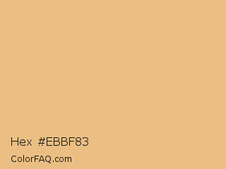 Hex #ebbf83 Color is a light orange color and the nearest color is Gold Sand #e6be8a. Hex code #ebbf83 and RGB value is rgb(235,191,131). In RGB color space, this color is composed of 92% red, 75% green, 51% blue, In CMYK color space, this color is composed of 0% cyan, 19% magenta, 44% yellow , 8% black , In HSL color space, this color has a hue angle of 35° , 72% saturation and 72% lightness.