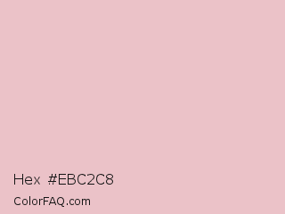 Hex #ebc2c8 Color is a very light red color and the nearest color is Cameo Pink #efbbcc. Hex code #ebc2c8 and RGB value is rgb(235,194,200). In RGB color space, this color is composed of 92% red, 76% green, 78% blue, In CMYK color space, this color is composed of 0% cyan, 17% magenta, 15% yellow , 8% black , In HSL color space, this color has a hue angle of 351° , 51% saturation and 84% lightness.