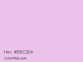 Hex #ebc2ea Color is a very light magenta color and the nearest color is French Lilac #ecc7ee. Hex code #ebc2ea and RGB value is rgb(235,194,234). In RGB color space, this color is composed of 92% red, 76% green, 92% blue, In CMYK color space, this color is composed of 0% cyan, 17% magenta, 0% yellow , 8% black , In HSL color space, this color has a hue angle of 301° , 51% saturation and 84% lightness.