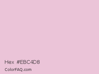 Hex #ebc4d8 Color is a very light rose color and the nearest color is Melanie #e4c2d5. Hex code #ebc4d8 and RGB value is rgb(235,196,216). In RGB color space, this color is composed of 92% red, 77% green, 85% blue, In CMYK color space, this color is composed of 0% cyan, 17% magenta, 8% yellow , 8% black , In HSL color space, this color has a hue angle of 329° , 49% saturation and 85% lightness.