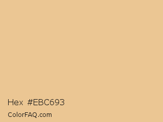 Hex #ebc693 Color is a light orange color and the nearest color is Putty #e7cd8c. Hex code #ebc693 and RGB value is rgb(235,198,147). In RGB color space, this color is composed of 92% red, 78% green, 58% blue, In CMYK color space, this color is composed of 0% cyan, 16% magenta, 37% yellow , 8% black , In HSL color space, this color has a hue angle of 35° , 69% saturation and 75% lightness.