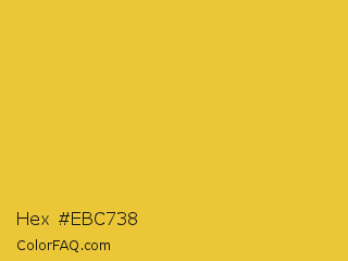 Hex #ebc738 Color is a normal yellow color and the nearest color is Saffron #f4c430. Hex code #ebc738 and RGB value is rgb(235,199,56). In RGB color space, this color is composed of 92% red, 78% green, 22% blue, In CMYK color space, this color is composed of 0% cyan, 15% magenta, 76% yellow , 8% black , In HSL color space, this color has a hue angle of 48° , 82% saturation and 57% lightness.
