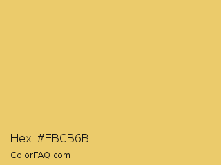 Hex #ebcb6b Color is a light orange color and the nearest color is Rob Roy #eac674. Hex code #ebcb6b and RGB value is rgb(235,203,107). In RGB color space, this color is composed of 92% red, 80% green, 42% blue, In CMYK color space, this color is composed of 0% cyan, 14% magenta, 54% yellow , 8% black , In HSL color space, this color has a hue angle of 45° , 76% saturation and 67% lightness.