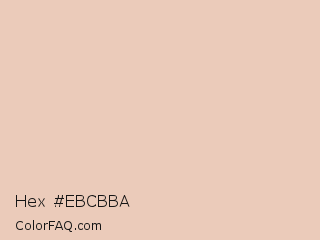 Hex #ebcbba Color is a very light orange color and the nearest color is Just Right #eccdb9. Hex code #ebcbba and RGB value is rgb(235,203,186). In RGB color space, this color is composed of 92% red, 80% green, 73% blue, In CMYK color space, this color is composed of 0% cyan, 14% magenta, 21% yellow , 8% black , In HSL color space, this color has a hue angle of 21° , 55% saturation and 83% lightness.