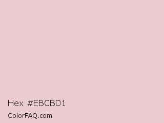 Hex #ebcbd1 Color is a very light red color and the nearest color is Oyster Pink #e9cecd. Hex code #ebcbd1 and RGB value is rgb(235,203,209). In RGB color space, this color is composed of 92% red, 80% green, 82% blue, In CMYK color space, this color is composed of 0% cyan, 14% magenta, 11% yellow , 8% black , In HSL color space, this color has a hue angle of 349° , 44% saturation and 86% lightness.