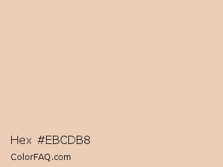 Hex #ebcdb8 Color is a very light orange color and the nearest color is Just Right #eccdb9. Hex code #ebcdb8 and RGB value is rgb(235,205,184). In RGB color space, this color is composed of 92% red, 80% green, 72% blue, In CMYK color space, this color is composed of 0% cyan, 13% magenta, 22% yellow , 8% black , In HSL color space, this color has a hue angle of 25° , 56% saturation and 82% lightness.