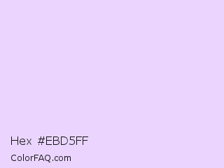 Hex #ebd5ff Color is a very light purple color and the nearest color is Pale Lavender #dcd0ff. Hex code #ebd5ff and RGB value is rgb(235,213,255). In RGB color space, this color is composed of 92% red, 84% green, 100% blue, In CMYK color space, this color is composed of 8% cyan, 16% magenta, 0% yellow , 0% black , In HSL color space, this color has a hue angle of 271° , 100% saturation and 92% lightness.