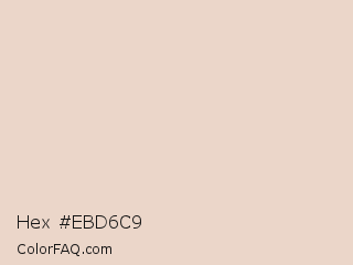 Hex #ebd6c9 Color is a very light orange color and the nearest color is Almond #eed9c4. Hex code #ebd6c9 and RGB value is rgb(235,214,201). In RGB color space, this color is composed of 92% red, 84% green, 79% blue, In CMYK color space, this color is composed of 0% cyan, 9% magenta, 14% yellow , 8% black , In HSL color space, this color has a hue angle of 23° , 46% saturation and 85% lightness.