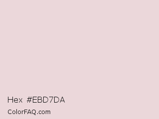Hex #ebd7da Color is a very light red color and the nearest color is Bizarre #eededa. Hex code #ebd7da and RGB value is rgb(235,215,218). In RGB color space, this color is composed of 92% red, 84% green, 85% blue, In CMYK color space, this color is composed of 0% cyan, 9% magenta, 7% yellow , 8% black , In HSL color space, this color has a hue angle of 351° , 33% saturation and 88% lightness.