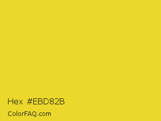 Hex #ebd82b Color is a normal yellow color and the nearest color is Golden Dream #f0d52d. Hex code #ebd82b and RGB value is rgb(235,216,43). In RGB color space, this color is composed of 92% red, 85% green, 17% blue, In CMYK color space, this color is composed of 0% cyan, 8% magenta, 82% yellow , 8% black , In HSL color space, this color has a hue angle of 54° , 83% saturation and 55% lightness.