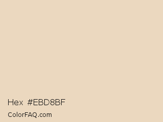 Hex #ebd8bf Color is a very light orange color and the nearest color is Almond #eed9c4. Hex code #ebd8bf and RGB value is rgb(235,216,191). In RGB color space, this color is composed of 92% red, 85% green, 75% blue, In CMYK color space, this color is composed of 0% cyan, 8% magenta, 19% yellow , 8% black , In HSL color space, this color has a hue angle of 34° , 52% saturation and 84% lightness.