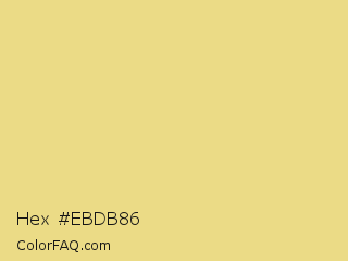 Hex #ebdb86 Color is a light yellow color and the nearest color is Flax #eedc82. Hex code #ebdb86 and RGB value is rgb(235,219,134). In RGB color space, this color is composed of 92% red, 86% green, 53% blue, In CMYK color space, this color is composed of 0% cyan, 7% magenta, 43% yellow , 8% black , In HSL color space, this color has a hue angle of 50° , 72% saturation and 72% lightness.