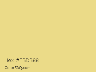 Hex #ebdb88 Color is a light yellow color and the nearest color is Flax #eedc82. Hex code #ebdb88 and RGB value is rgb(235,219,136). In RGB color space, this color is composed of 92% red, 86% green, 53% blue, In CMYK color space, this color is composed of 0% cyan, 7% magenta, 42% yellow , 8% black , In HSL color space, this color has a hue angle of 50° , 71% saturation and 73% lightness.