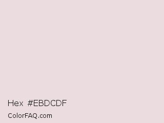 Hex #ebdcdf Color is a very light red color and the nearest color is Bizarre #eededa. Hex code #ebdcdf and RGB value is rgb(235,220,223). In RGB color space, this color is composed of 92% red, 86% green, 87% blue, In CMYK color space, this color is composed of 0% cyan, 6% magenta, 5% yellow , 8% black , In HSL color space, this color has a hue angle of 348° , 27% saturation and 89% lightness.