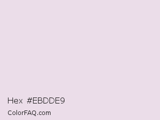 Hex #ebdde9 Color is a very light magenta color and the nearest color is Prim #f0e2ec. Hex code #ebdde9 and RGB value is rgb(235,221,233). In RGB color space, this color is composed of 92% red, 87% green, 91% blue, In CMYK color space, this color is composed of 0% cyan, 6% magenta, 1% yellow , 8% black , In HSL color space, this color has a hue angle of 309° , 26% saturation and 89% lightness.