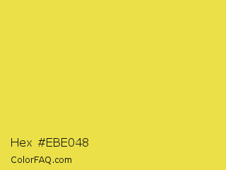 Hex #ebe048 Color is a normal yellow color and the nearest color is Minion Yellow #f5e050. Hex code #ebe048 and RGB value is rgb(235,224,72). In RGB color space, this color is composed of 92% red, 88% green, 28% blue, In CMYK color space, this color is composed of 0% cyan, 5% magenta, 69% yellow , 8% black , In HSL color space, this color has a hue angle of 56° , 80% saturation and 60% lightness.