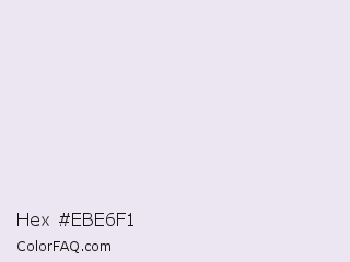 Hex #ebe6f1 Color is a very light violet color and the nearest color is Prim #f0e2ec. Hex code #ebe6f1 and RGB value is rgb(235,230,241). In RGB color space, this color is composed of 92% red, 90% green, 95% blue, In CMYK color space, this color is composed of 2% cyan, 5% magenta, 0% yellow , 5% black , In HSL color space, this color has a hue angle of 267° , 28% saturation and 92% lightness.