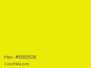 Hex #ebeb08 Color is a normal yellow color and the nearest color is Titanium Yellow #eee600. Hex code #ebeb08 and RGB value is rgb(235,235,8). In RGB color space, this color is composed of 92% red, 92% green, 3% blue, In CMYK color space, this color is composed of 0% cyan, 0% magenta, 97% yellow , 8% black , In HSL color space, this color has a hue angle of 60° , 93% saturation and 48% lightness.