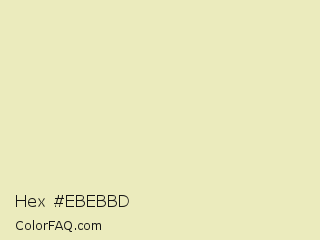 Hex #ebebbd Color is a very light yellow color and the nearest color is Fall Green #ecebbd. Hex code #ebebbd and RGB value is rgb(235,235,189). In RGB color space, this color is composed of 92% red, 92% green, 74% blue, In CMYK color space, this color is composed of 0% cyan, 0% magenta, 20% yellow , 8% black , In HSL color space, this color has a hue angle of 60° , 53% saturation and 83% lightness.