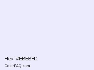 Hex #ebebfd Color is a almost white blue color and the nearest color is Selago #f0eefd. Hex code #ebebfd and RGB value is rgb(235,235,253). In RGB color space, this color is composed of 92% red, 92% green, 99% blue, In CMYK color space, this color is composed of 7% cyan, 7% magenta, 0% yellow , 1% black , In HSL color space, this color has a hue angle of 240° , 82% saturation and 96% lightness.
