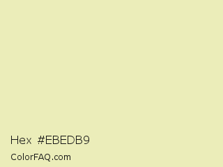 Hex #ebedb9 Color is a very light yellow color and the nearest color is Fall Green #ecebbd. Hex code #ebedb9 and RGB value is rgb(235,237,185). In RGB color space, this color is composed of 92% red, 93% green, 73% blue, In CMYK color space, this color is composed of 1% cyan, 0% magenta, 22% yellow , 7% black , In HSL color space, this color has a hue angle of 62° , 59% saturation and 83% lightness.