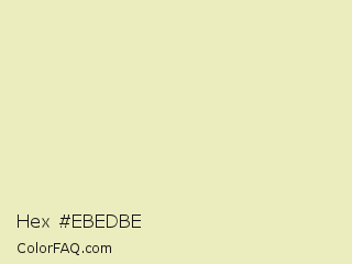 Hex #ebedbe Color is a very light yellow color and the nearest color is Fall Green #ecebbd. Hex code #ebedbe and RGB value is rgb(235,237,190). In RGB color space, this color is composed of 92% red, 93% green, 75% blue, In CMYK color space, this color is composed of 1% cyan, 0% magenta, 20% yellow , 7% black , In HSL color space, this color has a hue angle of 63° , 57% saturation and 84% lightness.
