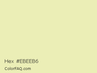 Hex #ebeeb6 Color is a very light yellow color and the nearest color is Fall Green #ecebbd. Hex code #ebeeb6 and RGB value is rgb(235,238,182). In RGB color space, this color is composed of 92% red, 93% green, 71% blue, In CMYK color space, this color is composed of 1% cyan, 0% magenta, 24% yellow , 7% black , In HSL color space, this color has a hue angle of 63° , 62% saturation and 82% lightness.