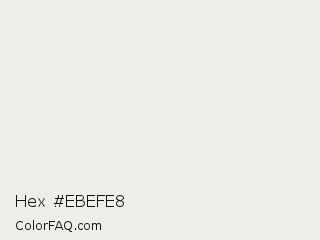 Hex #ebefe8 Color is a very light green color and the nearest color is Cararra #eeeee8. Hex code #ebefe8 and RGB value is rgb(235,239,232). In RGB color space, this color is composed of 92% red, 94% green, 91% blue, In CMYK color space, this color is composed of 2% cyan, 0% magenta, 3% yellow , 6% black , In HSL color space, this color has a hue angle of 94° , 18% saturation and 92% lightness.
