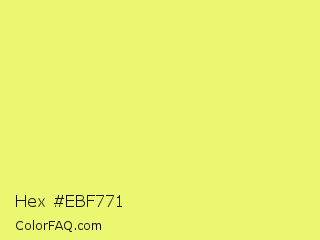 Hex #ebf771 Color is a light yellow color and the nearest color is Manz #eeef78. Hex code #ebf771 and RGB value is rgb(235,247,113). In RGB color space, this color is composed of 92% red, 97% green, 44% blue, In CMYK color space, this color is composed of 5% cyan, 0% magenta, 54% yellow , 3% black , In HSL color space, this color has a hue angle of 65° , 89% saturation and 71% lightness.