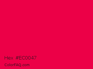 Hex #ec0047 Color is a normal rose color and the nearest color is Red Munsell #f2003c. Hex code #ec0047 and RGB value is rgb(236,0,71). In RGB color space, this color is composed of 93% red, 0% green, 28% blue, In CMYK color space, this color is composed of 0% cyan, 100% magenta, 70% yellow , 7% black , In HSL color space, this color has a hue angle of 342° , 100% saturation and 46% lightness.