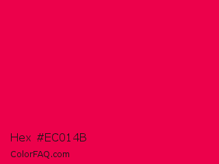 Hex #ec014b Color is a normal rose color and the nearest color is Red Ribbon #ed0a3f. Hex code #ec014b and RGB value is rgb(236,1,75). In RGB color space, this color is composed of 93% red, 0% green, 29% blue, In CMYK color space, this color is composed of 0% cyan, 100% magenta, 68% yellow , 7% black , In HSL color space, this color has a hue angle of 341° , 99% saturation and 46% lightness.