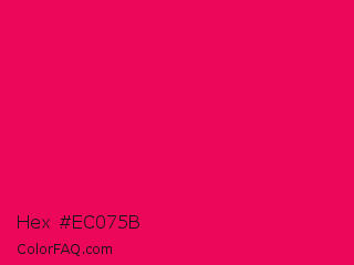 Hex #ec075b Color is a normal rose color and the nearest color is Razzmatazz Crayola #e30b5c. Hex code #ec075b and RGB value is rgb(236,7,91). In RGB color space, this color is composed of 93% red, 3% green, 36% blue, In CMYK color space, this color is composed of 0% cyan, 97% magenta, 61% yellow , 7% black , In HSL color space, this color has a hue angle of 338° , 94% saturation and 48% lightness.