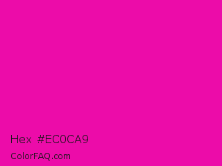 Hex #ec0ca9 Color is a normal magenta color and the nearest color is Hollywood Cerise #f400a1. Hex code #ec0ca9 and RGB value is rgb(236,12,169). In RGB color space, this color is composed of 93% red, 5% green, 66% blue, In CMYK color space, this color is composed of 0% cyan, 95% magenta, 28% yellow , 7% black , In HSL color space, this color has a hue angle of 318° , 90% saturation and 49% lightness.
