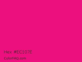 Hex #ec107e Color is a normal rose color and the nearest color is Mexican Pink #e4007c. Hex code #ec107e and RGB value is rgb(236,16,126). In RGB color space, this color is composed of 93% red, 6% green, 49% blue, In CMYK color space, this color is composed of 0% cyan, 93% magenta, 47% yellow , 7% black , In HSL color space, this color has a hue angle of 330° , 87% saturation and 49% lightness.