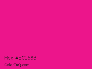 Hex #ec158b Color is a normal magenta color and the nearest color is Barbie Pink #e0218a. Hex code #ec158b and RGB value is rgb(236,21,139). In RGB color space, this color is composed of 93% red, 8% green, 55% blue, In CMYK color space, this color is composed of 0% cyan, 91% magenta, 41% yellow , 7% black , In HSL color space, this color has a hue angle of 327° , 85% saturation and 50% lightness.